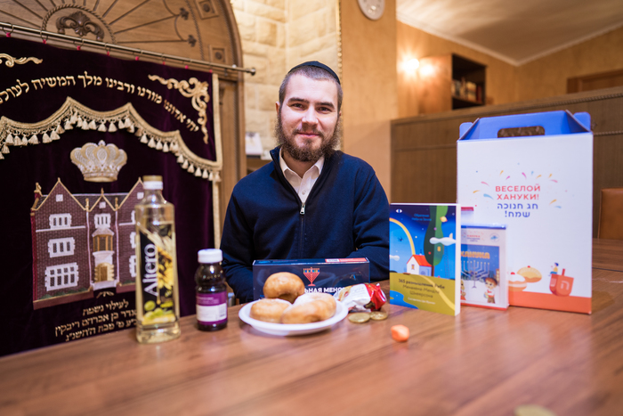 Почему евреи в Хануку едят пончики? Для ответа на этот вопрос срочно отправляемся в ивановскую синагогу. Нас там уже ждет раввин Гавриэль Шаламов и огромный противень с пончиками. Даже не знаю кого я рад видеть больше(шучу конечно же).