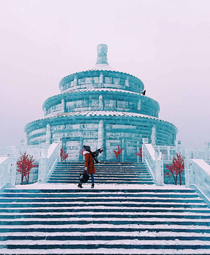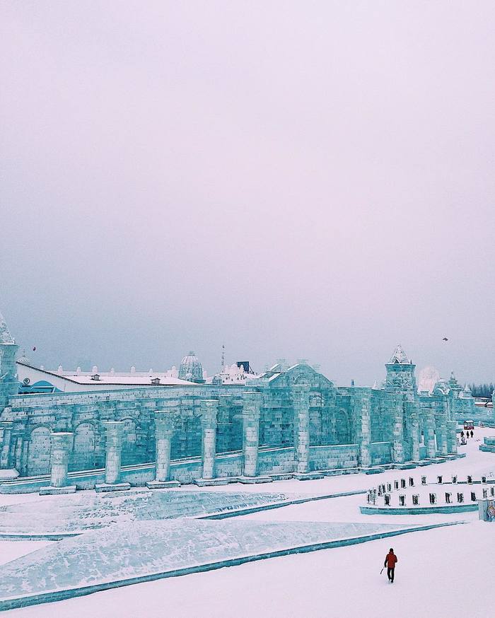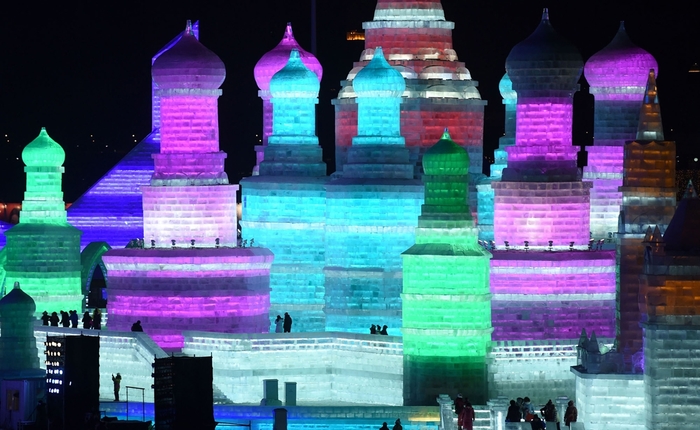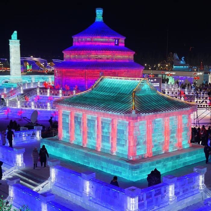 Столица китайской провинции Хэйлунцзян, город Харбин на несколько недель зимой становится самым популярным туристическим направлением в стране. На площади около 800 тыс. м² 10 000 специалистов из разных стран мира строят десятки скульптур изо льда, распределяя их по различным тематическим зонам.