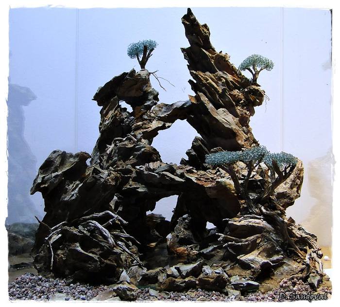 Интересный способ закрепления мха от известного акваскейпера Диего Сандовала. Кусочек губки, немного цианокрилата («суперклея»), мох Fissendis — и вуаля, типа крона дерева! Не первый год слежу за миром акваскейпинга, но такой способ вижу впервые. Очень просто, доступно, эффектно. Мох разрастётся (а Fissendis растёт весьма быстро) и полностью скроет губку.