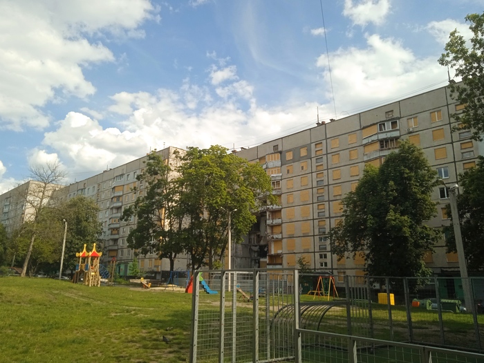 Девятижтажка, основательно повреждённая в конце прошлого года. Выделяю отдельно, дабы в карусели не затерялась. Очень громко было, страшно. На утро было много различных служб здесь, стояли палатки с едой для пострадавших. Фото были да сплыли, как говорится.