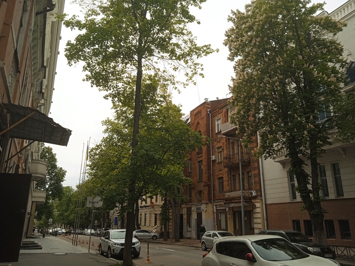 Следующий дом весной 22-го поразил меня тем, что в середине часть отсутствовала, ни крыши, ни стен, ни межэтажных перекрытий, ни тыльной части здания. Вместе с пустотой на улицах города всё выглядело как постапокалипсис. Сейчас так, отстроили, но заметно, что здесь никто не живёт