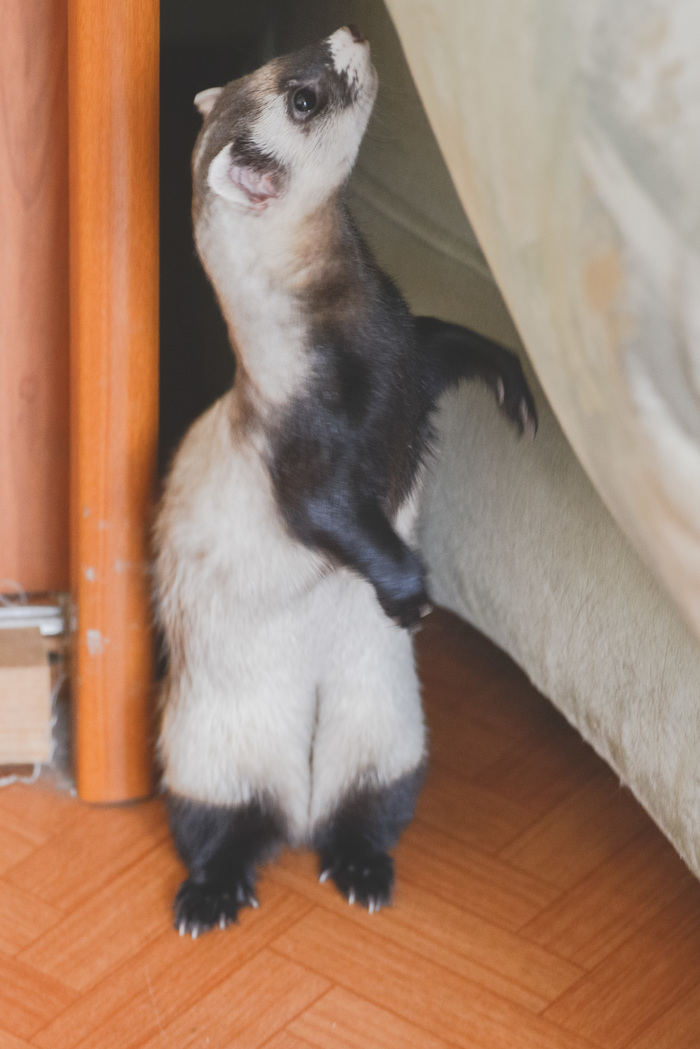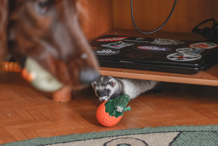 На момент ее появления в доме были два хорька - Зябуш (5 лет) и Юлик (2 года).