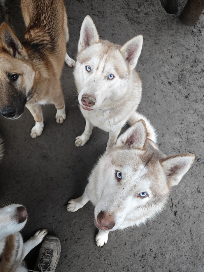 "Почему ваши хаски такие спокойные? Почему не прыгают на гостей? Они ведь должны бегать, носиться, прыгать и много выть..."