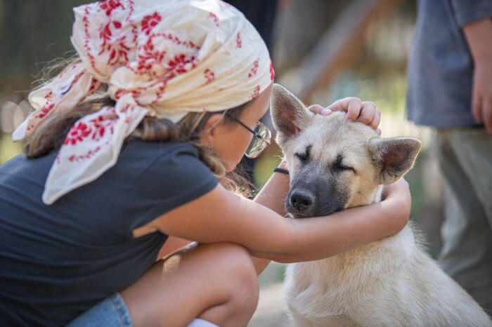 Радостно мы бежим встречать только наших "вожатых", которые нас кормят. Во-первых, от них вкусно пахнет едой, во-вторых, у них в кармане всегда вкусняшка, ну и в-третьих - они очень заботливые и всегда обнимают нас и целуют в нос))