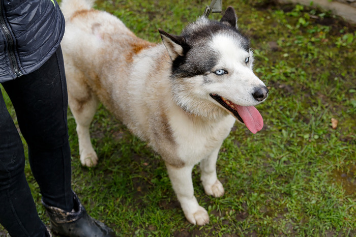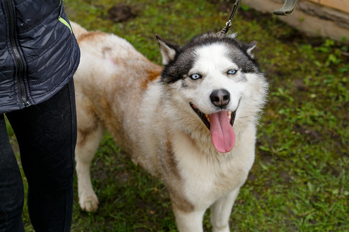 Вольт безумно красив. Имеет очень необычный окрас шерсти и бездонные голубые глаза. На такую собаку все будут обращать внимание на прогулке.