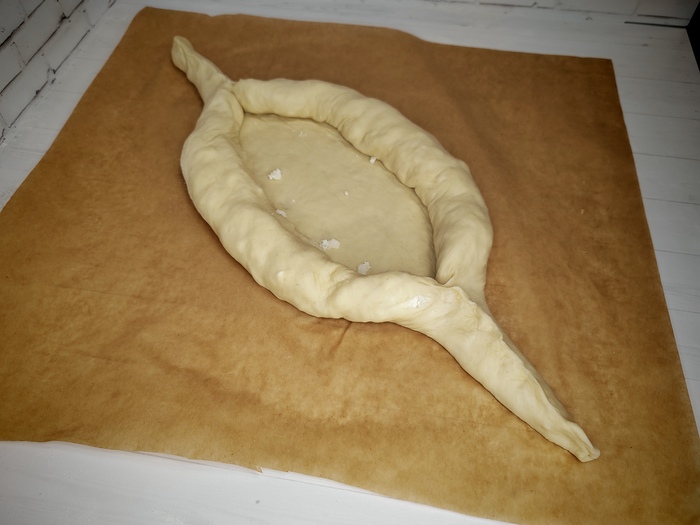 В общем, да, пирог в форме лодки, символизирующей... Кхм... Собственно, лодку. С яичным желтком, символизирующим солнце. И всё это, как неофициальный символ теплого приморского города Батуми (читать с характерным акцентом).