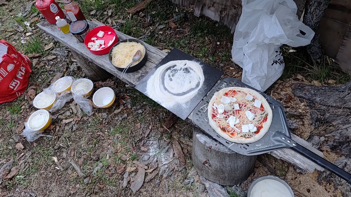 К вечеру проходим еще 40км и встаем на вторую стоянку. Я приступаю к воплощению хотелки - мне давно хотелось попробовать приготовить пиццу и другую выпечку в походных условиях, и вот дорос по оборудованию и опыту.