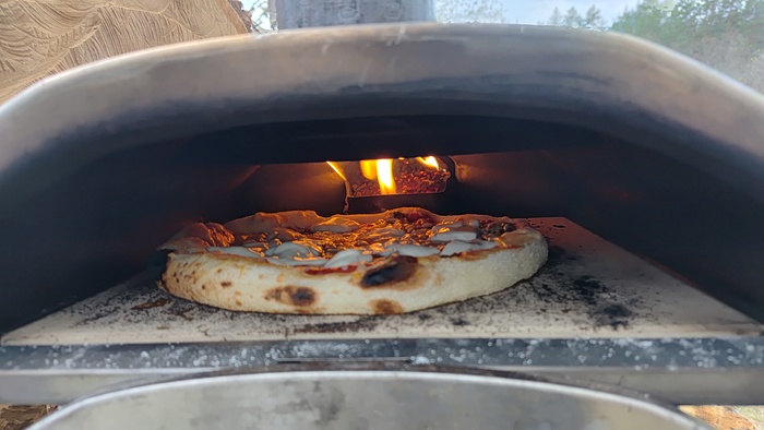Я с этой печкой уже плотно познакомился и выпек на ней наверное штук 50 пицц с начала года. И надо сказать, что даже на природе она меня не подвела - все получилось в точности так же , как дома, в условиях летней кухни