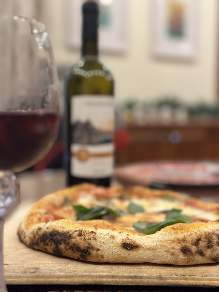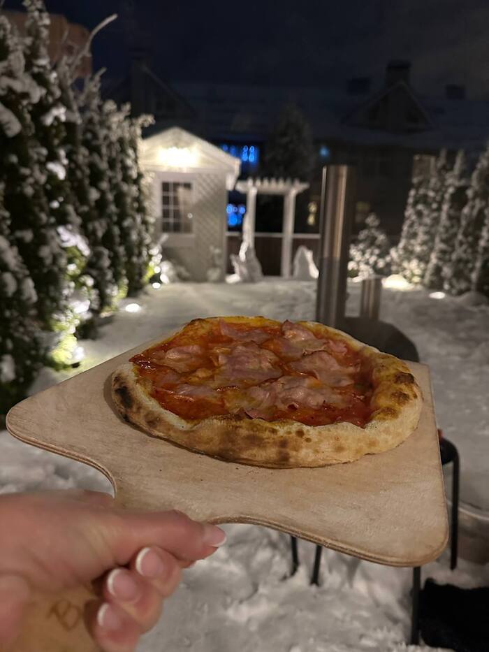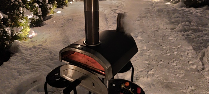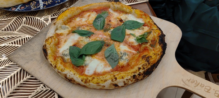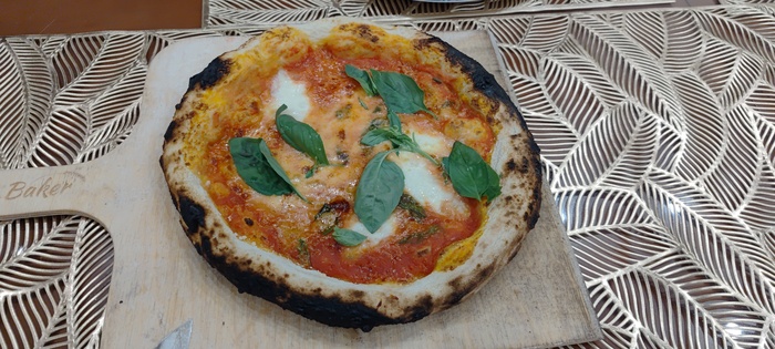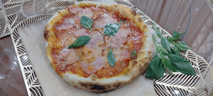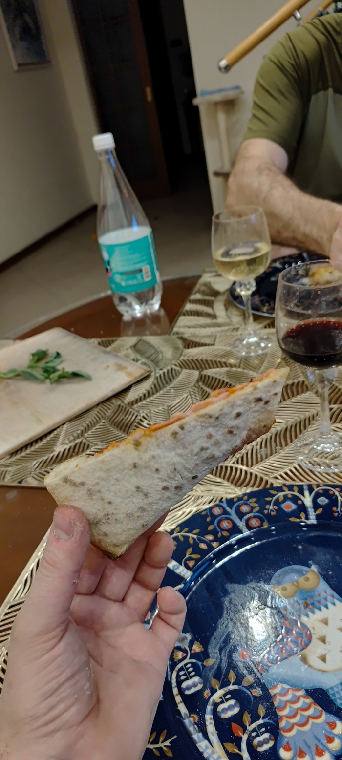 То что эта малютка все же не абы какая, а помпейская печка с неравномерностью температуры дает о себе знать - каждые 10 секунд надо повернуть пиццу на четверть оборота, чтобы она не стояла одним боком к жару. 3-4 оборота, минута или полторы - и готово. С ума если честно сойти, после духовки где пицца готовится минут 15, да еще и в 2 захода, когда вначале печешь базу, а потом уже начинку, и еще и час греешь камень. Тут все мгновенно.