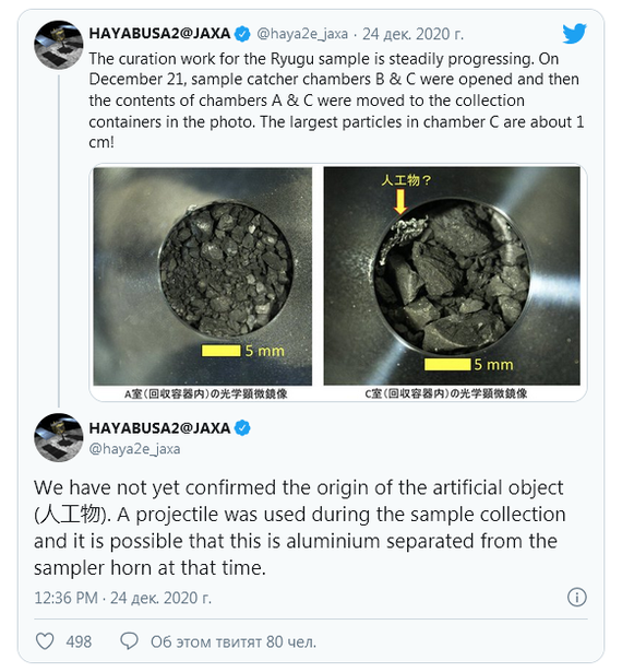 В итоге оказалось, что ожидания ученых были перевыполнены с лихвой. Научное оборудование было сконструировано так, чтобы для анализа хватило 0,1 грамма астероида. Однако «Хаябуса-2» привез в 50 раз больше — целых 5,4 грамма!