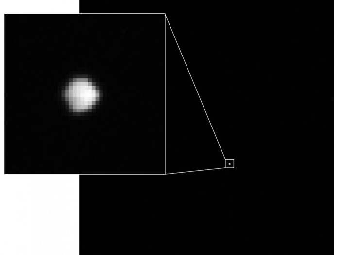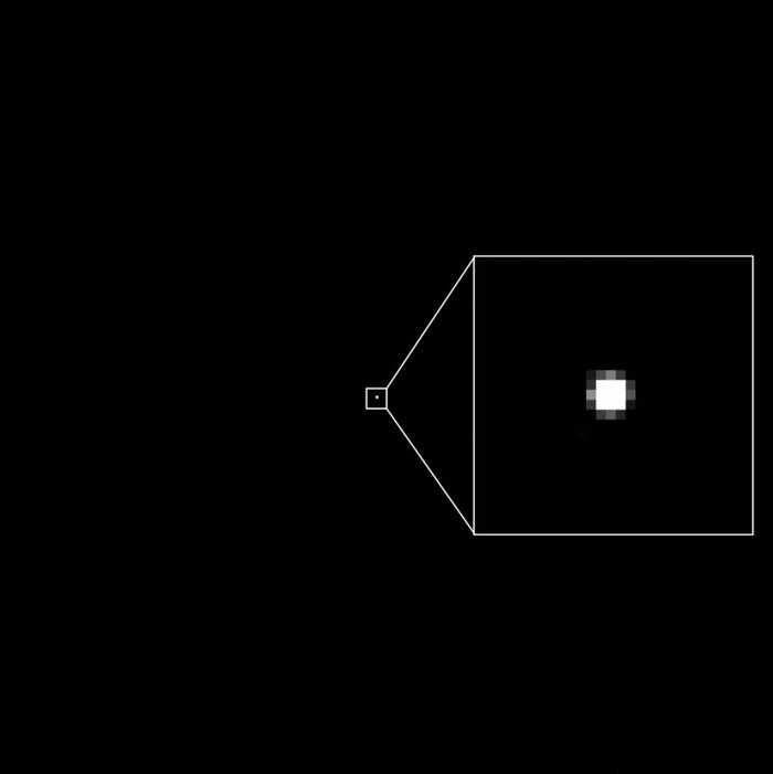 «Хаябуса-2» по-прежнему находится слишком далеко от Рюгу, чтобы мы могли рассмотреть какие-то конкретные детали его поверхности. На новых снимках астероид занимает площадь около 10 пикселей. Тем не менее, и этого достаточно, что примерно определить его параметры. Очевидно, что форму космического булыжника можно с определенной натяжкой охарактеризовать как круговую. Рюгу не состоит из двух половинок подобно комете Чурюмова-Герасименко, и не является сильно вытянутым телом, как тот же астероид Итокава.