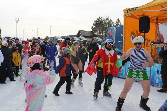 Здесь совсем раздеваться не нужно: можно нарядиться на свой вкус, главное ярко и необычно. Например, в кигуруми – пижамы в виде зверей. Сразу несколько девушек обернулись полотенцами, как будто не рассекают по снежному склону, а только вышли из душа. Гитарист, Человек-паук, жених и невеста, Дед мороз, пираты, участники Игра кальмара да и просто нарядные люди!