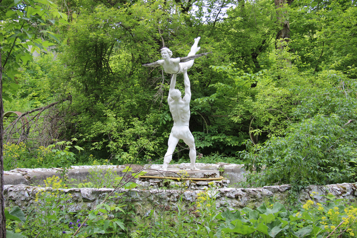 Кстати, по рассказам старожилов чуть выше первого озера от входа около забора должен находиться памятник Сталину. Его как демонтировали, так и оставили лежать до лучших времён.