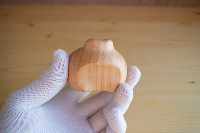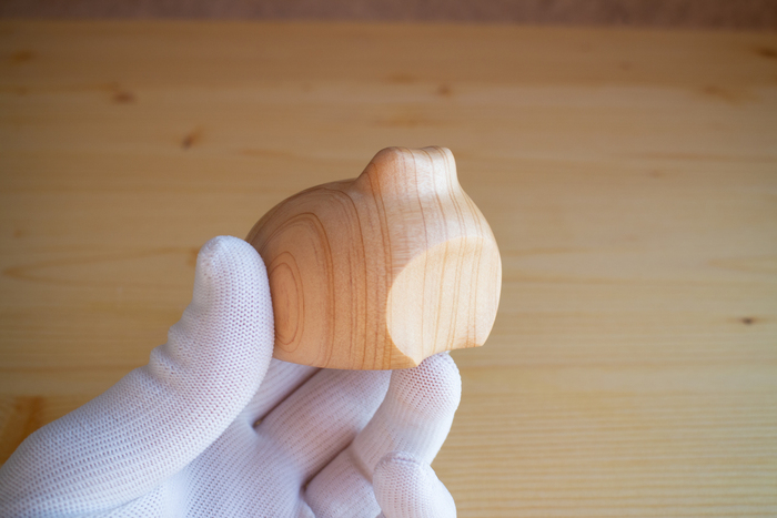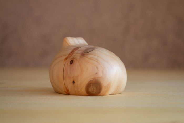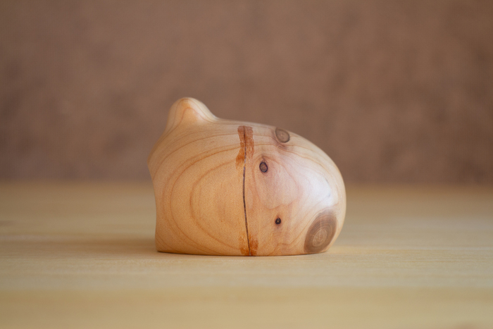 Вот Кипарисовую жабку вырезал. Первый раз резал Кипарис, хорошее дерево, приятное в работе. Даже куча мелких дефектов не помеха. Но по торцам древесина сосёт... всё сосёт, вот УФ смолу всосало по верху трещины, которую заливал на боку. Получилась клякса.