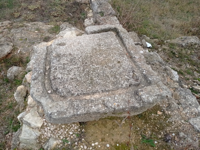 Мы в том-же прошлом посту гадали, для чего это плита. Версий было 3: плита от туалета, для давки винограда и для стирки белья.
