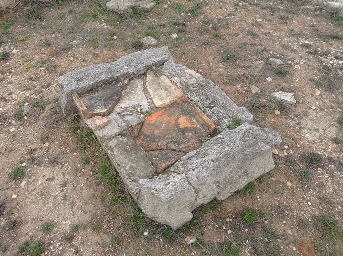 В руинах много колодцев, есть что-то похожее на винный погреб. И плиты, как из прошлого поста про Херсонес.