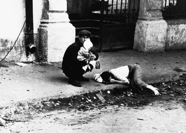 Я никогда не забуду картину, как нас на машине везли по городу, и машина сломалась. Шофёр взялся её чинить, а мы смотрели через борт вокруг себя. Прямо перед нами на площади несколько офицеров танцевали с какими-то женщинами, одетыми цыганками. У всех в руках были бутылки вина. Было какое-то нереальное чувство. Они танцевали как сумасшедшие. Это был пир во время чумы.