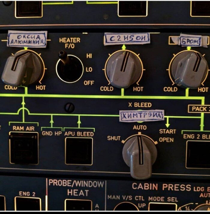 Ну и напоследок я покажу вам систему управления. На фото пульт системы химтрейлинга с учебного борта, где он не замаскирован под управление системой кондиционирования.