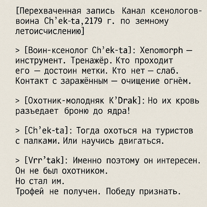 Просил Dall-E несколько раз сгенерировать подобное изображение, отказывался от авторских прав. Когда пообщался с ним на тему того, что Харриган и Хищник могли бы подружиться, он сам предложил сгенерировать изображение. Вышло немного криво, но забавно.