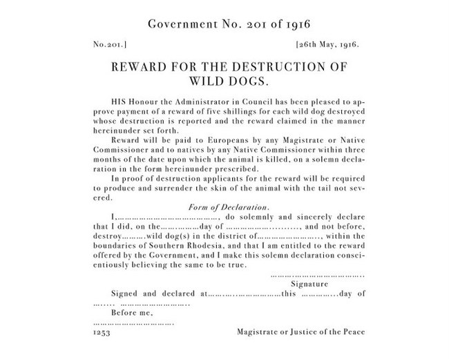 В Южной Родезии (ныне Зимбабве) в 1916 году учредили награду в пять шиллингов за уничтожение ликаона, размер её периодически увеличивался, пока она окончательно не была отменена совсем недавно, в 1977 году.