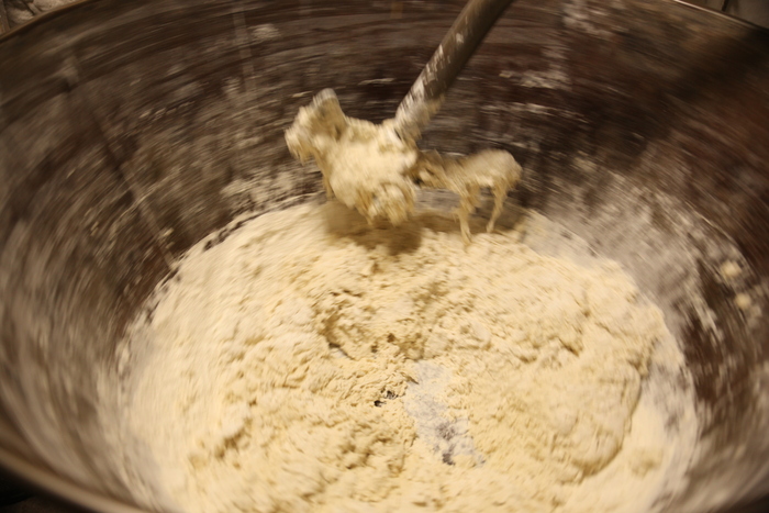 Через неделю тётя Света позволяет мне уже не только «лапу» мыть. Теперь мне можно притаскивать ей на стол строенные формы для формовки, утаскивать их же с уже расформованным тестом на расстоечную де́жу, расставлять по полкам после смазывания маслом. Мыть мне можно уже не только «лапу» тестомеса, но и обе де́жи, и столы, и весы: в общем, всё, что мы тестом изгваздали за время выпечки. К тесту, правда, Светлана Валентиновна пока что моих рук не допускает, тревожно. Несмотря на многолетний опыт, ей и самой за себя тревожно бывает ранним утром при замесе, всякий раз сверяется с рукописной тетрадочкой и деревянными счётами, приговаривает: