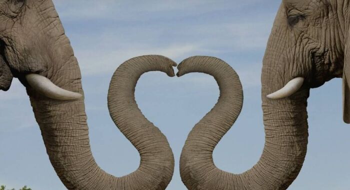 3. Слоны часто обнимаются, ухватившись хоботами, друг за друга.