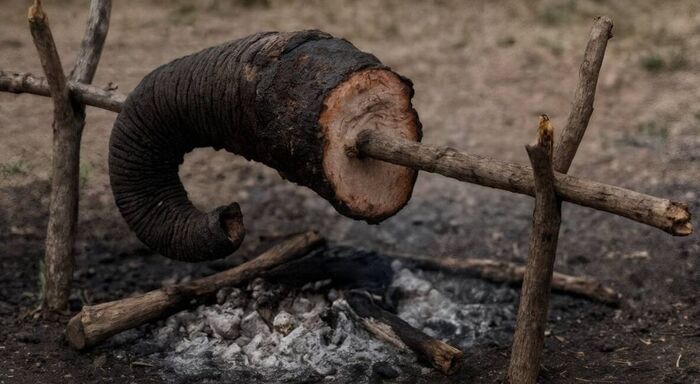 Мясо бедра слона описывается как нечто среднее между говядиной и буйволятиной – тёмное, волокнистое, но относительно предсказуемое. Соль, перец, угли – и уже можно сделать нечто съедобное. А вот хобот...