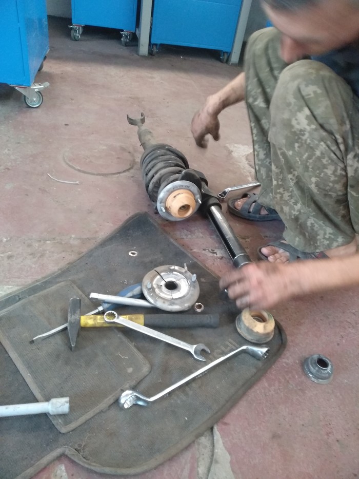 Обратите внимание и на пыльники амортизаторов, они не должны иметь повреждений и признаков замасливания. Если амортизатор весь в масле, то он уже не выполняет своей функции гашения колебаний в полной мере, так как он потерял рабочую жидкость. Поэтому все пыльники должны быть герметичные и сухие, без следов масла. Осмотрите пружины, они могут быть банально сломаны или иметь разное количество витков, что недопустимо.
