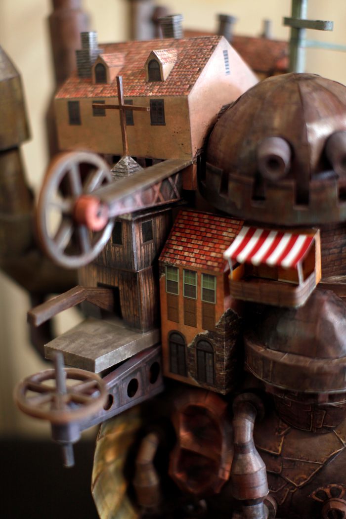 Всем привет! Хочу показать вам моего любимчика! Если кто-то не знает, что это за существо - это замок Хаула или просто Ходячий замок из полнометражного аниме-фильма «Ходячий за́мок» (2004г) от японского режиссера Хаяо Миядзаки🎬. Я очень люблю все его фильмы и увидев на просторах интернета схемы этого макета загорелась мечтой собрать его! Купив коврик, мнооого клея и макетных ножей приступила к работе.