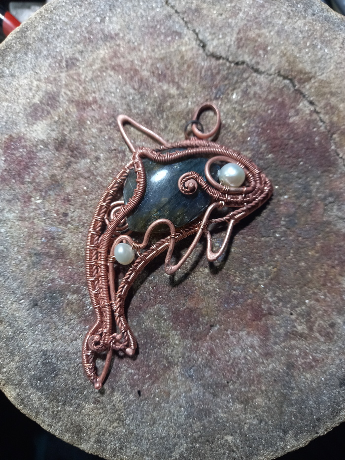 Для создания кулона "Косатка" были использованы техники wire wrapping, холодная ковка, пайка.