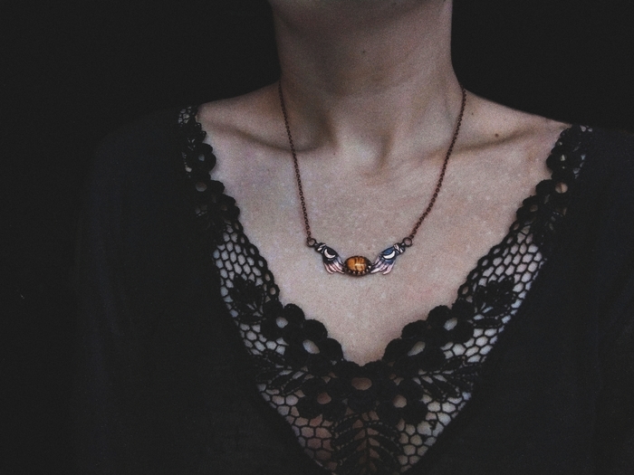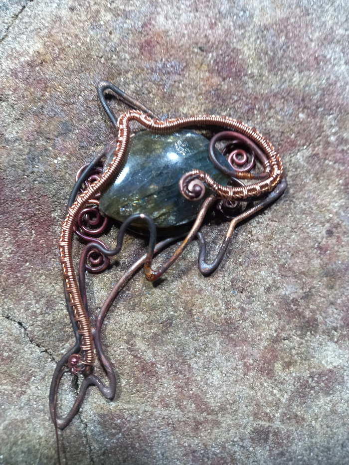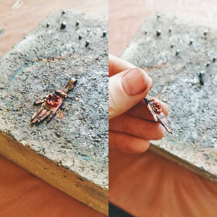 Готово! Почти. Остаётся привести сам кулон в порядок - нанести патину, зачистить, покрыть лаком и собрать на цепочку. И вот что получилось: