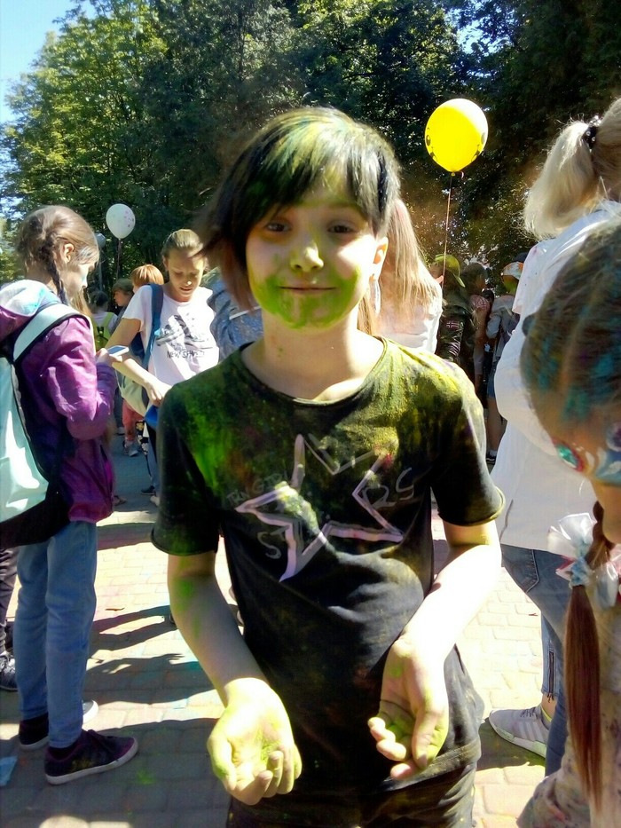 Лето-2016, городской праздник, я с учениками. В один момент дети побежали окрашиваться, а я не стала. По окончанию пытались измазать меня, я не разрешила, после чего выражения лиц у них стали 🙁 такие. Ладно, даю добро - с визгом разбегаются в разные стороны, макают пальцы в краску на земле и мажут меня со всех сторон. В общем, дети у меня адекватно выкрашены - кто красный, кто зелёный, а я как будто просто грязная.