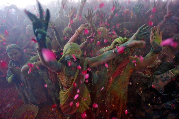 Индийский аналог нашего Ивана Купалы. Только вода более разноцветная и люди на самом деле желают быть облитыми. (Фото Virendra Singh Gosain):
