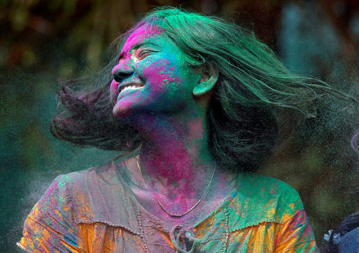 Существует несколько легенд о происхождении праздника Холи. Одна из них такая. Шива испепелил своим третьим глазом бога любви Каму, который пытался вывести его из медитации, после чего Кама остался бестелесным. Но по просьбе жены Шивы Парвати и жены Камы богини Рати Шива вернул Каме тело всего на 3 месяца в году. И теперь когда Кама обретает тело, все вокруг расцветает, и счастливые люди празднуют самый веселый праздник весны. (Фото Adnan Abidi):