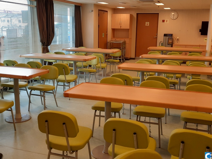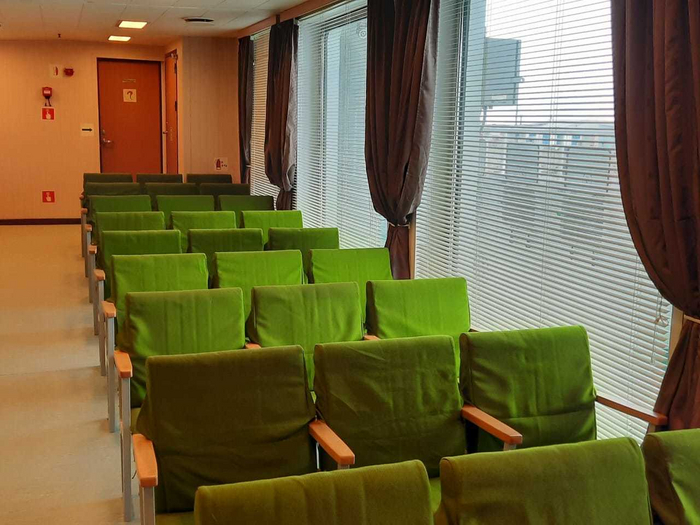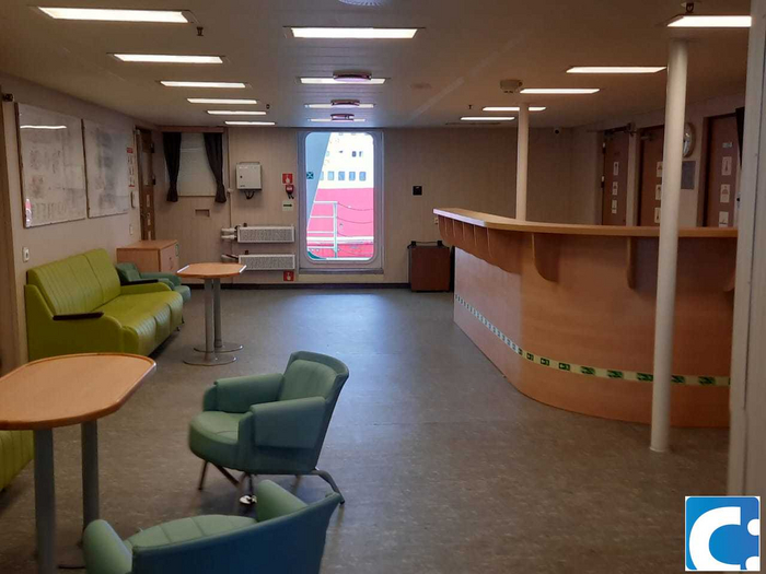 И вот паром пришел, едем в порт, проходим первый досмотр, доезжаем до стоянки. Здесь кстати обустроена комната отдыха, со скамейками, полноценной кухней и скамейками. И в этой комнате ждем команды на погрузку. Спустя пары часов ожидания едем грузиться.