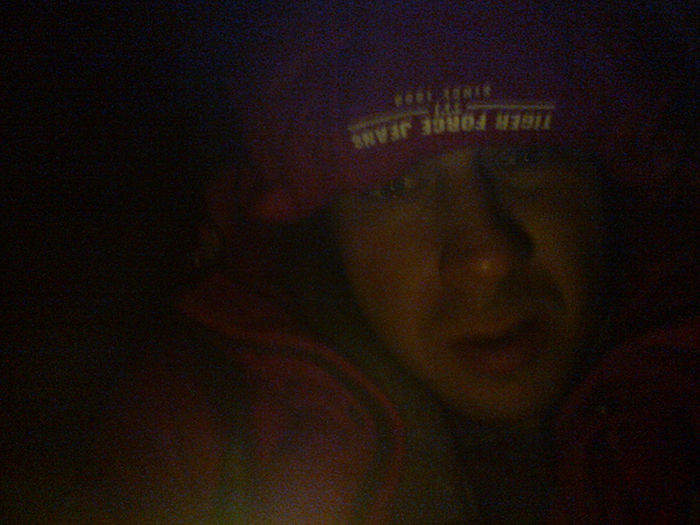 Мы вытащили лодку на пустынный берег, сплошь усыпанный обломками огромных камней, из-за которых приходилось постоянно падать. Над обрывом возвышалась заброшенная водокачка. Обломки деревьев торчали из резиновых шин. "Будем ждать штиля", - сказал Ефимыч. Стемнело почти сразу. Мысль, что я ничем не хуже Саныча: и водой окатило, и ждать придётся, настолько меня воодушевила, что я запалил зажигалку и сфотографировал свою физиономию на телефон. Я и не подозревал ещё, что именно разрез на Ерзовке окажется самой героической частью нашей маленькой экспедиции, и всё ради каких-то дафний...