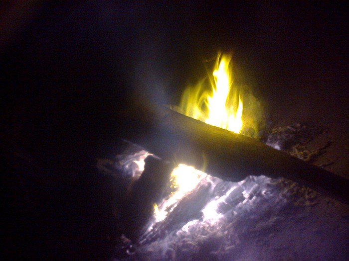 Наконец, Ефимыч решил развести костёр. Часы показывали четыре ночи. Он бросил в костёр каких-то листьев и поплыл пряный запах. "Китайцы называли последний, самый тёмный час перед рассветом, часом быка!" - сообщил я, согревая руки и веселея. "Чем это они мотивировали?" - спросил Ефимыч. "Не знаю, легенда какая-то, наверное". Но "Час быка" не был страшным у нас. Он был тёплым, мне хотелось задремать, вспоминался Серый Солдатов, читающий под шерстяным одеялом в общаге книжку про Мумия Тролля и ворковавший: "Как Хемуль у камина!" Мне вдруг стало ясно, что вообще не важно, кто кому муж и кто кому жена. Верная дружба, коллектив, общее дело, коммунизм, вот что важно! Вот та константа, в которую ведёт любовь к Наташе! Вот то единственное, что имеет смысл! И если бы она была здесь, костёр горел бы всю ночь, я позаботился бы об этом. В общем, я снял тот костёр на телефон.