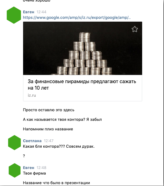На этой ноте я встал, извинился за потраченное время, сказав что имел опыт общения с финансовыми пирамидами, и вышел.