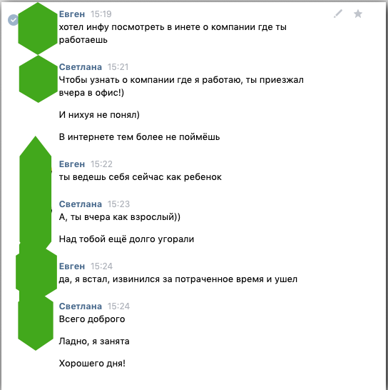 Осадок остался неприятный, написал ей в вк, и вот что из этого вышло, чутка теперь подгорает у меня: