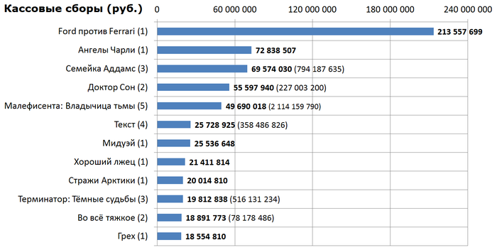 Цифра в скобках после названия обозначает, какую неделю фильм идёт в широком прокате.