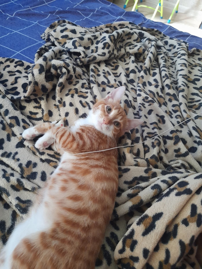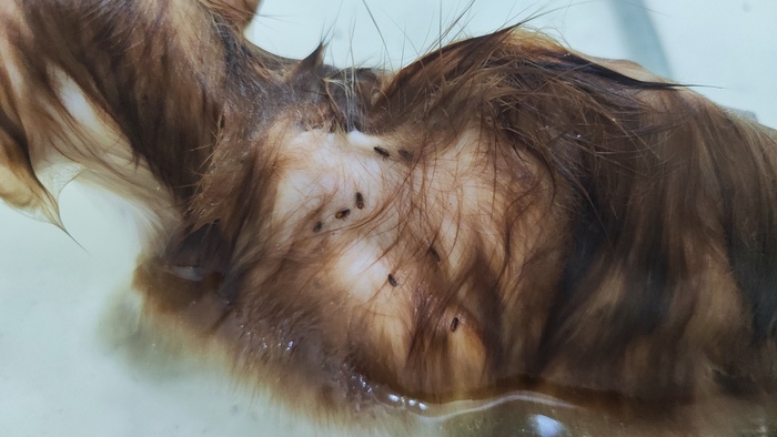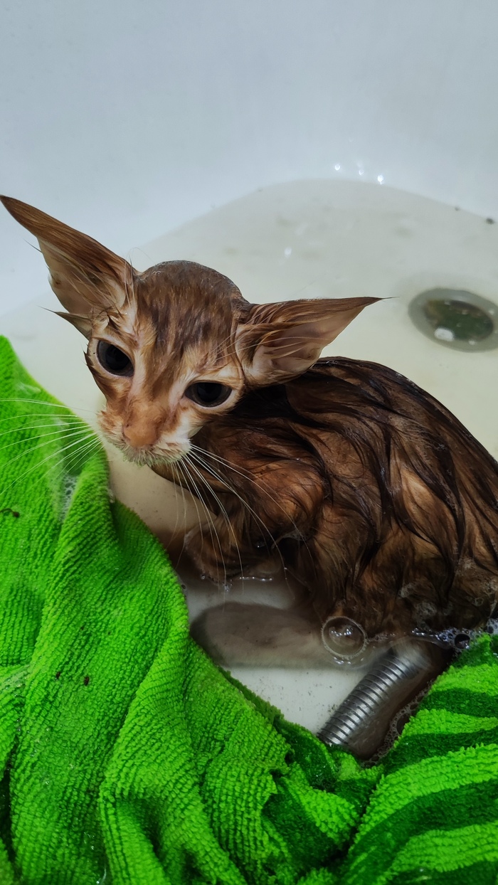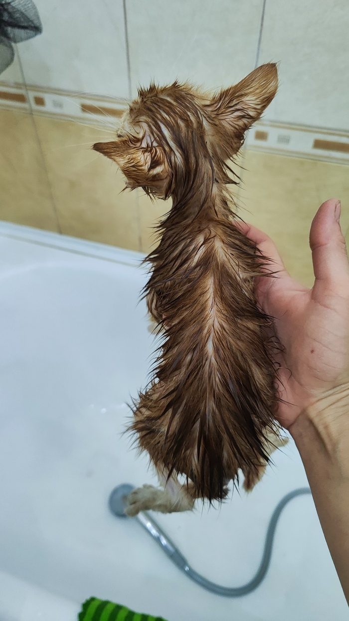 Принесла и давай его осматривать. На вид ему месяца два -три показалось. Тощий до ужаса,я его хрящики в хвосте пальцами прощупывала, все блохи района на нём. Давай его обрабатывать, купать, кормить. Ел он плохо. Сил не было. А вечером еще и кучей глистов сходил на моё полотенце...