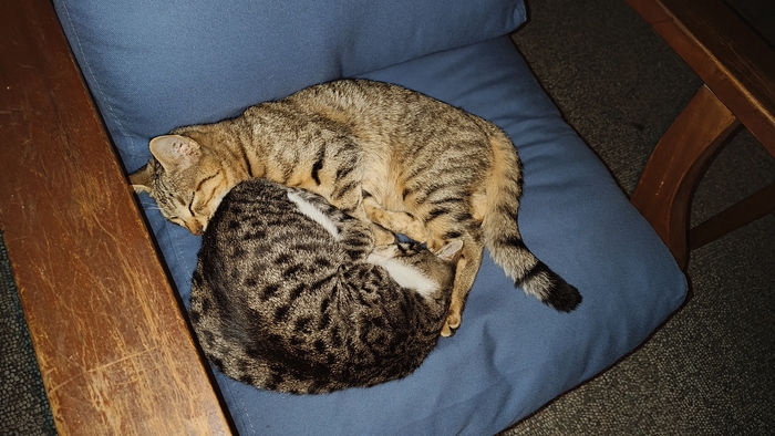 Из плюсов собаки бродячие не заходят во двор. Завидев их коты кооперируются и прям начинают охоту на них. Те видимо с мыслью " ну нахер" обходят двор стороной.