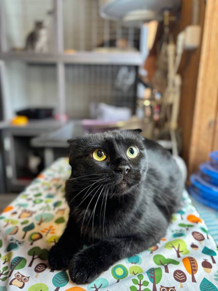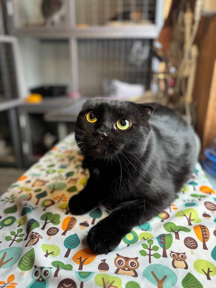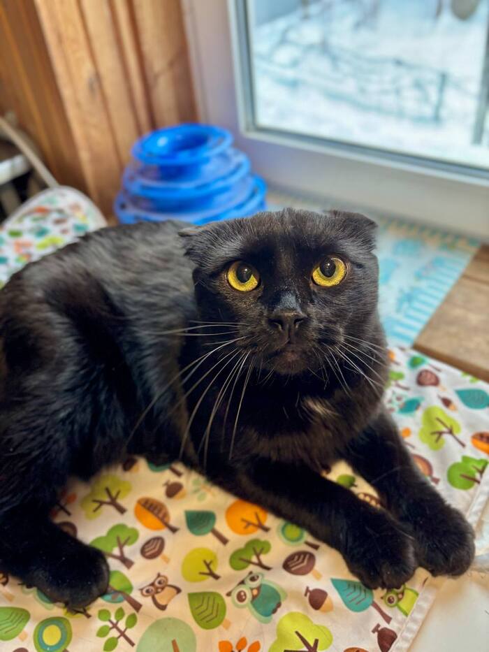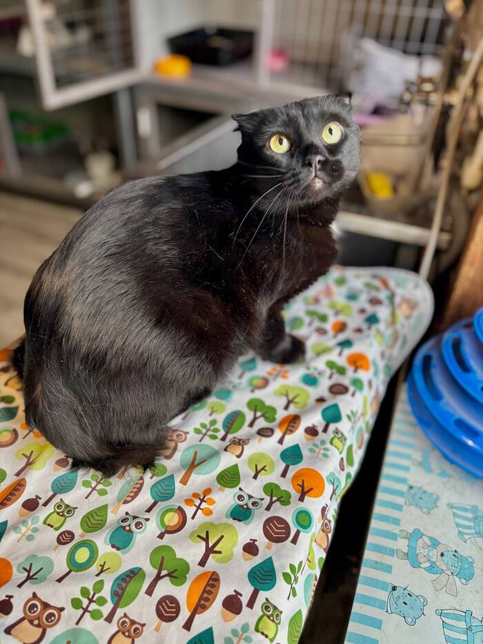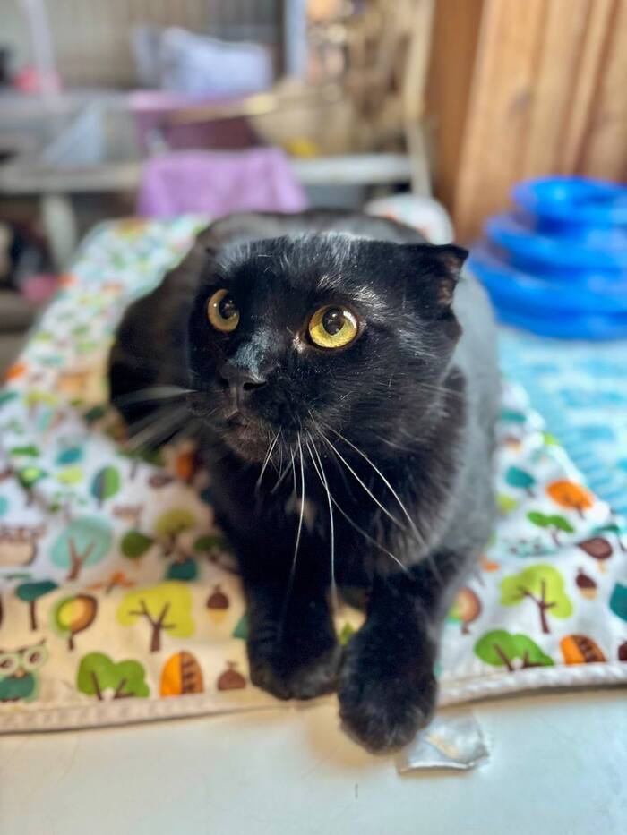 Породистый, шотландский вислоухий, чёрный окрас, спасён, документов нет