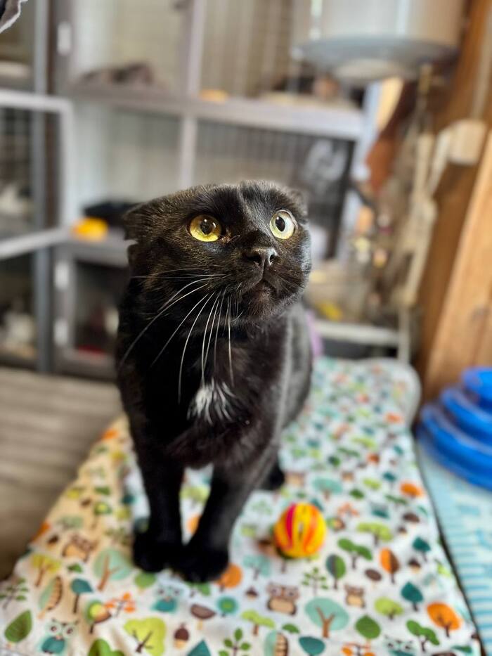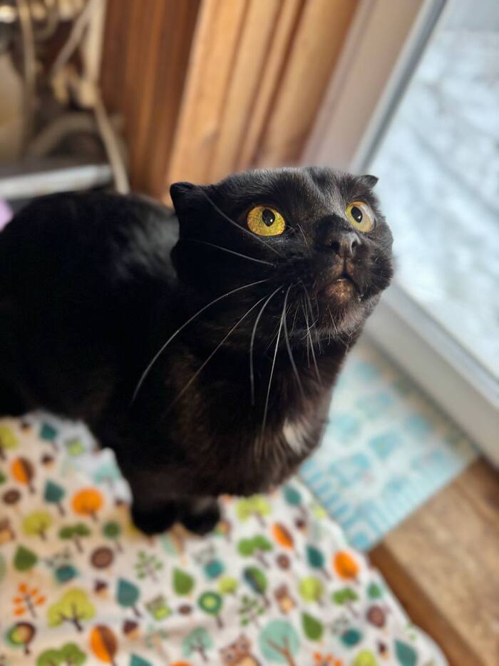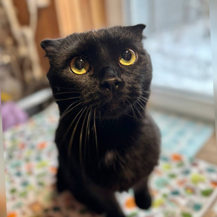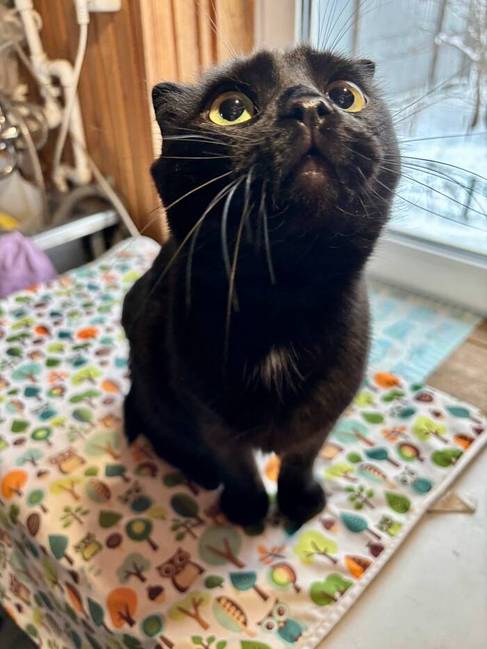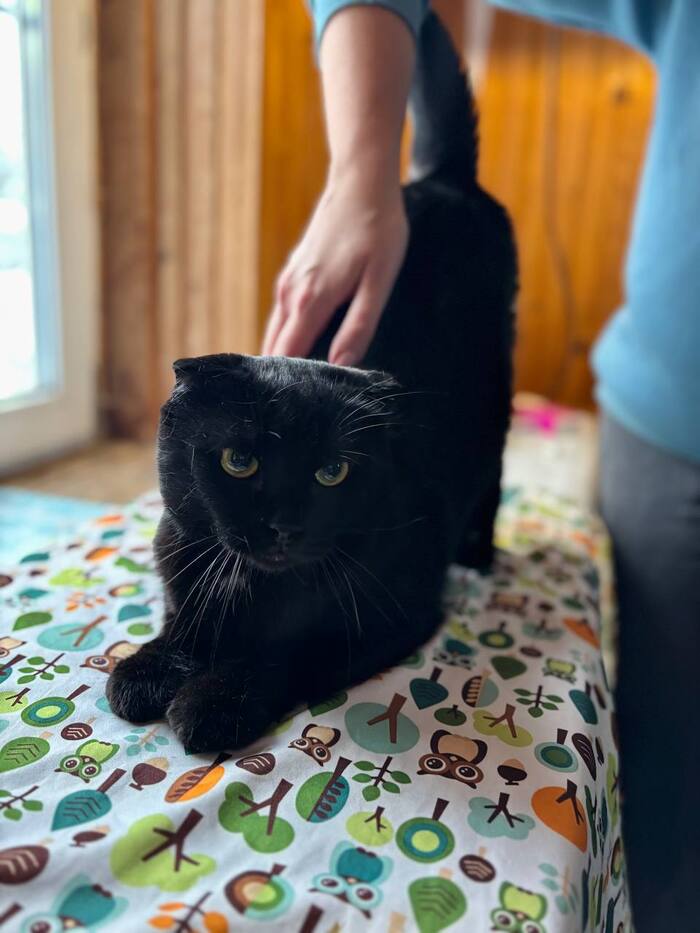 Породистый, шотландский вислоухий, чёрный окрас, спасён, документов нет