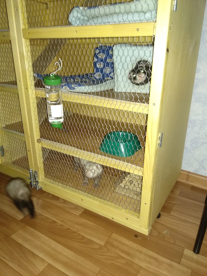 К старшим пока не пускаем, пусть сперва подрастёт и окрепнет. Кстати, ревностный интерес к ней проявляет только Харли (блондинка на нижнем этаже в клетке), а Элли как-то пофигу.