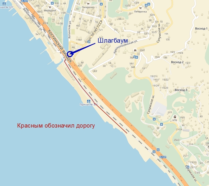 В Хосте я бывал много раз и в последний приезд летом заметил что дорога ведущая на пляж перегорожена шлагбаумом.