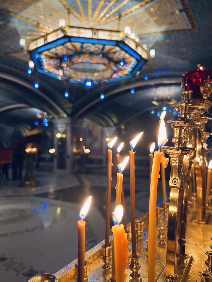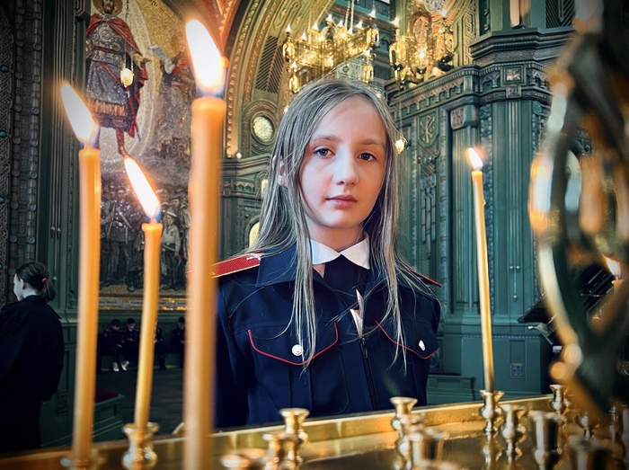 Встретил там девочек-курсантов, или кадетов, или казаков - я не разбираюсь. Они ставили свечки. Попросил разрешения и сделал снимок:
