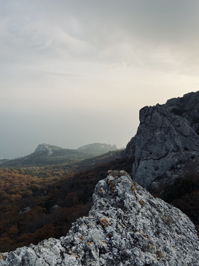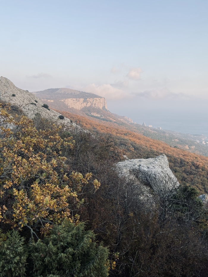 Путешествие на Ильяс- Кая начинается с ялтинской трассы на остановке "Ласпи". Честно говоря, увидев масштабы горы и расстояние до нее я немного испугалась. Снизу Ильяс кажется крутым и неприступным. И, поскольку, мои навыки альпинизма оставляют желать лучшего, оптимизма немного поубавилось.