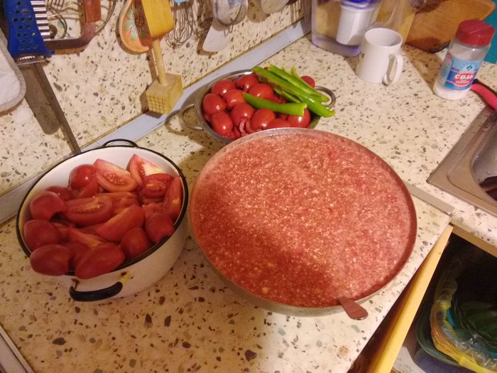 Всё это перемешал с молотыми помидорами и по баночкам.