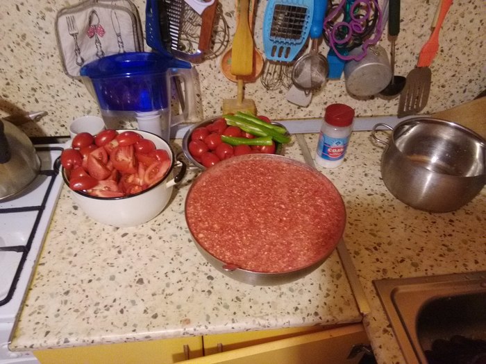 Дальше просто: порезал, помыл, прокрутил на мясорубке.